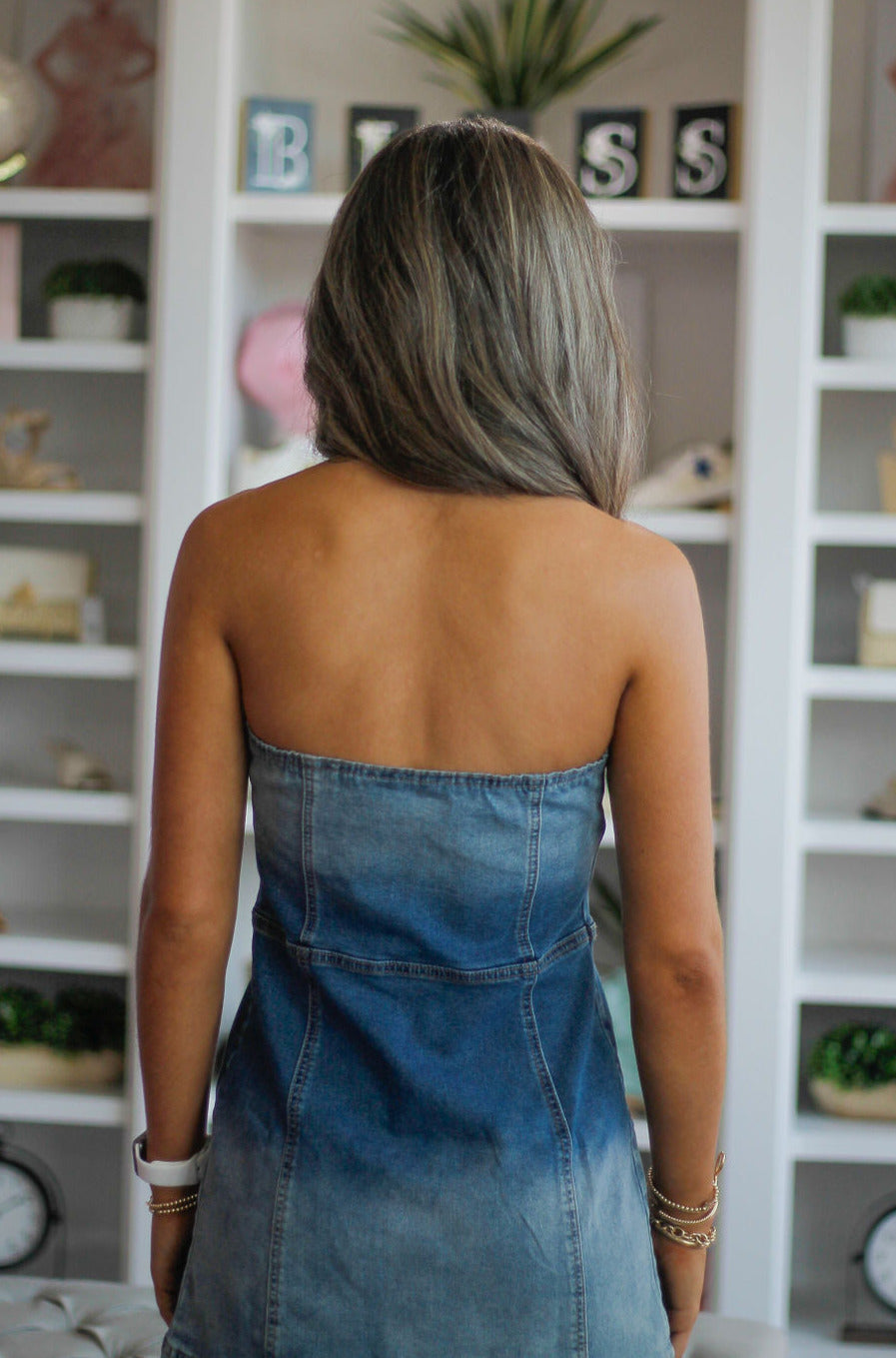 Stay cool and stylish at your next country concert with our Halter Collared Denim Dress. The button down design and convenient front top pockets add a touch of functionality to this must-have piece. Plus, the breathable fabric will keep you comfortable all night long.