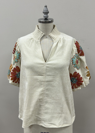 Elevate your wardrobe with the Embroidered Detail Puff Sleeve Suede Top. Featuring a refined v-neck and elegant puff sleeves adorned with a beautiful pattern of orange, green, and blue flowers, this top blends soft suede texture with intricate embroidery for a sophisticated touch. Its unique design adds subtle charm and a splash of color, perfect for making a graceful statement in any setting.