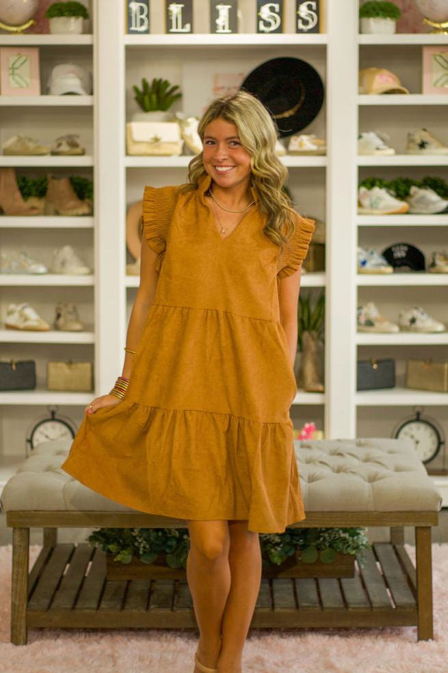 Flit and flutter in style with our Flutter Sleeve Corduroy Midi Dress. This dress adds a touch of charm and whimsy to any outfit, while the soft corduroy material provides comfort and warmth. Perfect for a playful yet trendy look.