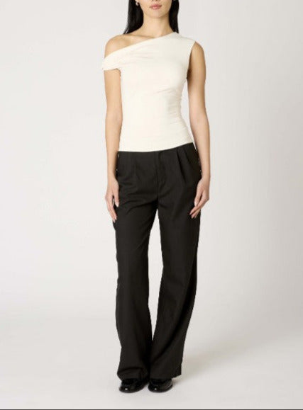 Meet the Fraise Top, a sleek and minimal essential designed to add effortless sophistication to your wardrobe. Featuring an asymmetrical one-shoulder neckline with a gentle drape, this top flatters your silhouette while creating a modern, feminine look. The sleeveless design keeps it versatile for layering or wearing alone during warmer days, while the slim fit ensures a clean, elongated shape.