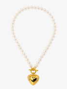 Add a touch of romance with this Heart Charm Pearl Collar Necklace, featuring lustrous pearl beads and a gleaming golden heart pendant. The toggle closure adds a classic finish, while the triple-plated design ensures lasting shine. Hypoallergenic and scratch-resistant, this timeless piece perfectly blends elegance with modern charm.