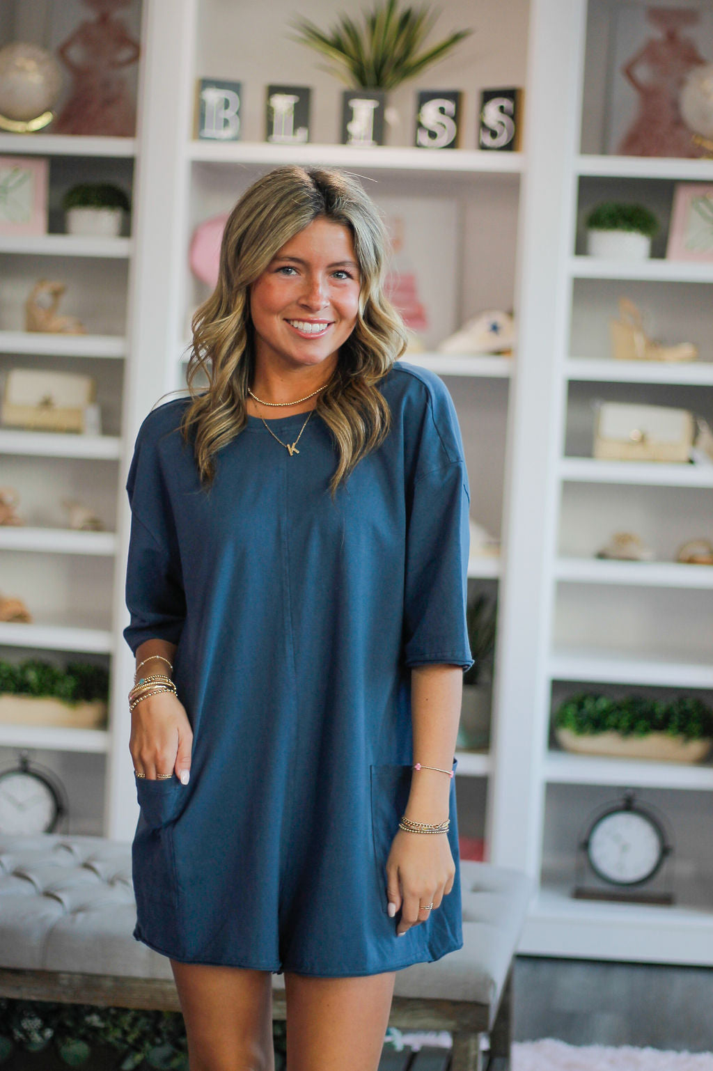 Expertly crafted from t-shirt material, the Lounge Around Romper is both super comfy and stylish. Featuring front pockets and a v-cut out in the back, this oversized romper is our best seller, available in two versatile colors. Perfect for lounging or running errands.