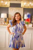 Elevate your style with the Button Down Mini Dress by Pinch. The flutter sleeves add a feminine touch, while the button down top and tie waist create a flattering silhouette. Perfect for any occasion, this dress offers both fashion and comfort.