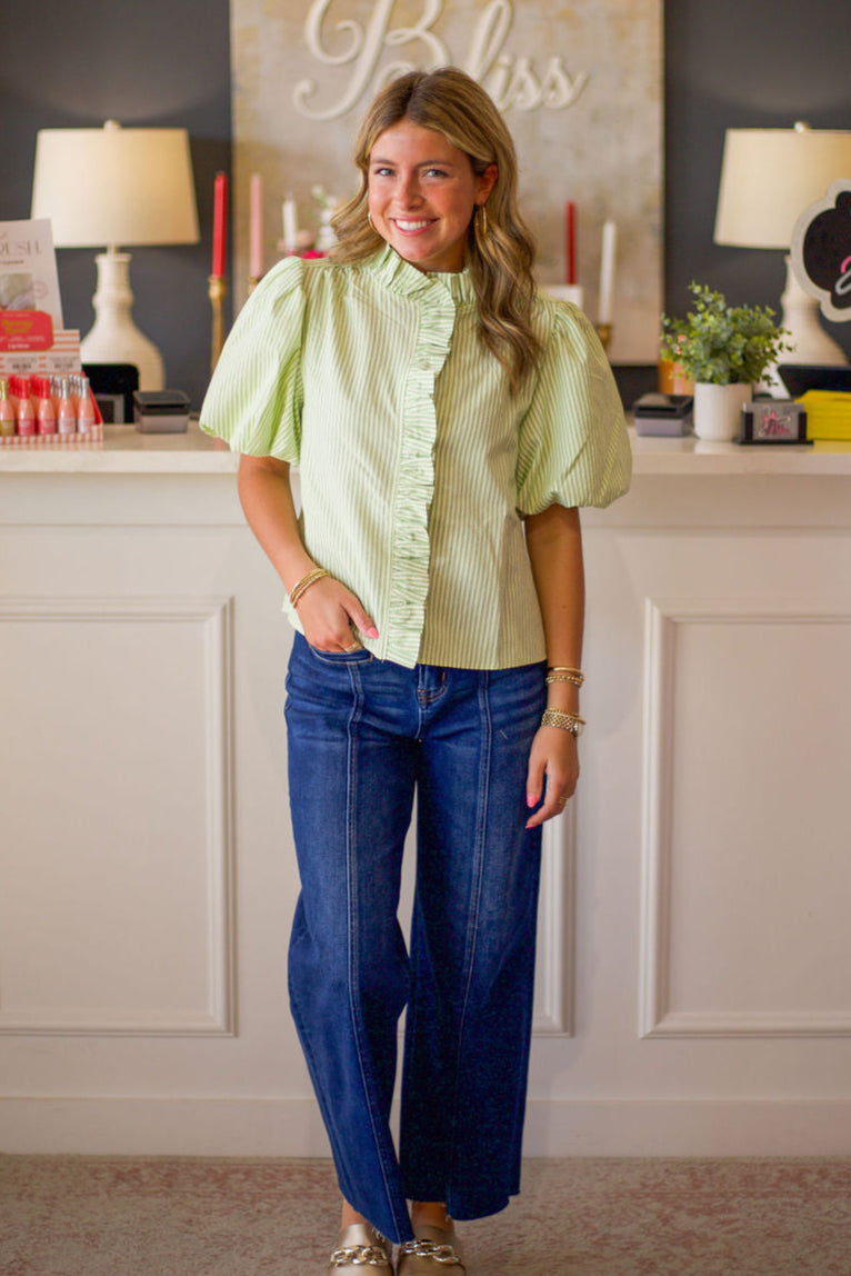 Unleash your inner fashionista with our Ruffle Detail Collared Neck Top! Featuring charming bubble sleeves and a playful button down design, this top is perfect for adding a touch of whimsy to any outfit. Don't miss out on this fun and unique piece!
