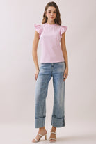 Ruffled Flutter Sleeves Round Neck Sleeveless Top