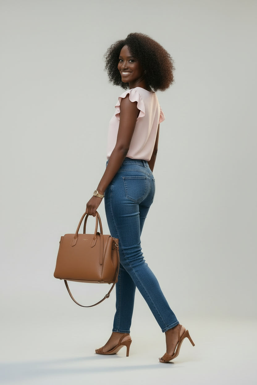 Apple Shape: If you have an apple-shaped body with a fuller midsection and slimmer legs, aim to elongate the torso and draw attention away from the midsection. Empire waist tops and dresses can create a flattering silhouette. Look for structured jackets and tops that graze over the stomach area without clinging. Straight-leg or bootcut trousers and skirts with a slight A-line can help to streamline the lower body.