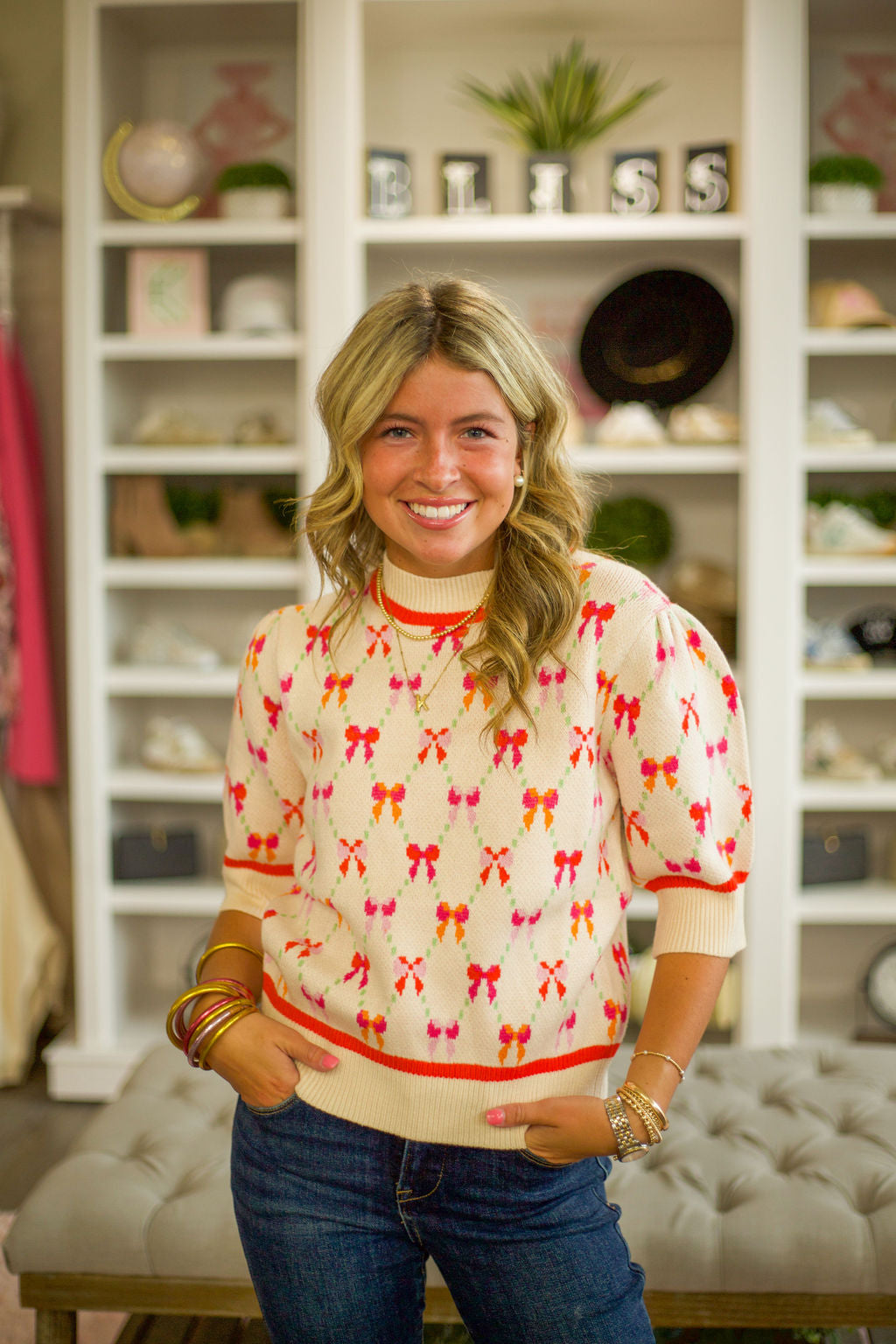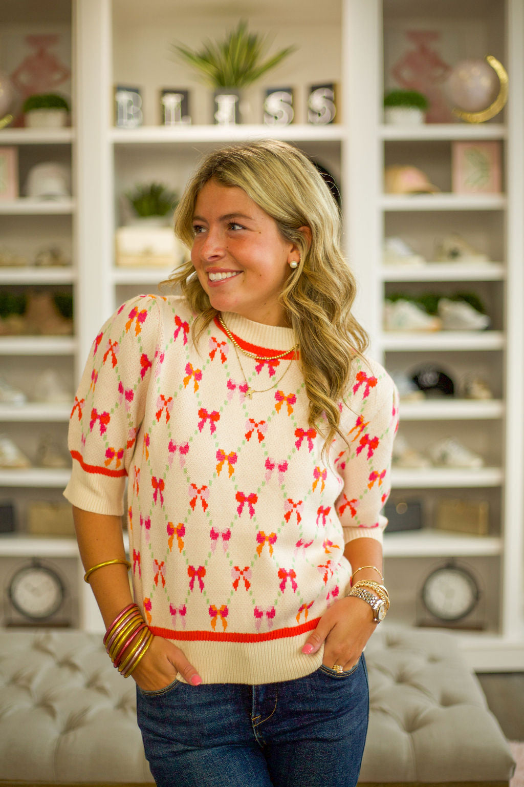 Stay stylish and comfortable with our Short Sleeve THML Ribbon Pattern Knit top. Made with high-quality fabric, this top features a unique ribbon pattern that adds a touch of fun to your wardrobe. Perfect for any occasion, this top is a must-have for fashion-forward individuals. Grab yours today!