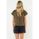 Button Detail Short Sleeve Suede Top