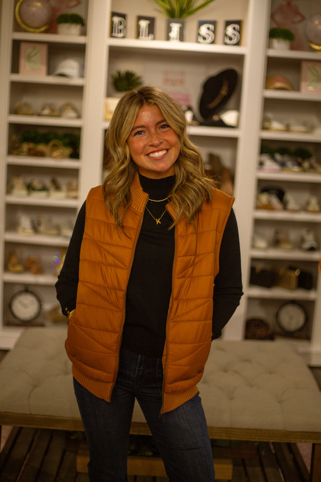 Stay warm and add some spice to your wardrobe with our Sleeveless Quilted Front Full Zip Sweater Vest. In a bold and daring tumeric color, this quilted vest will keep you cozy and stylish. Say goodbye to boring winter layers and hello to a touch of fun with this must-have piece.