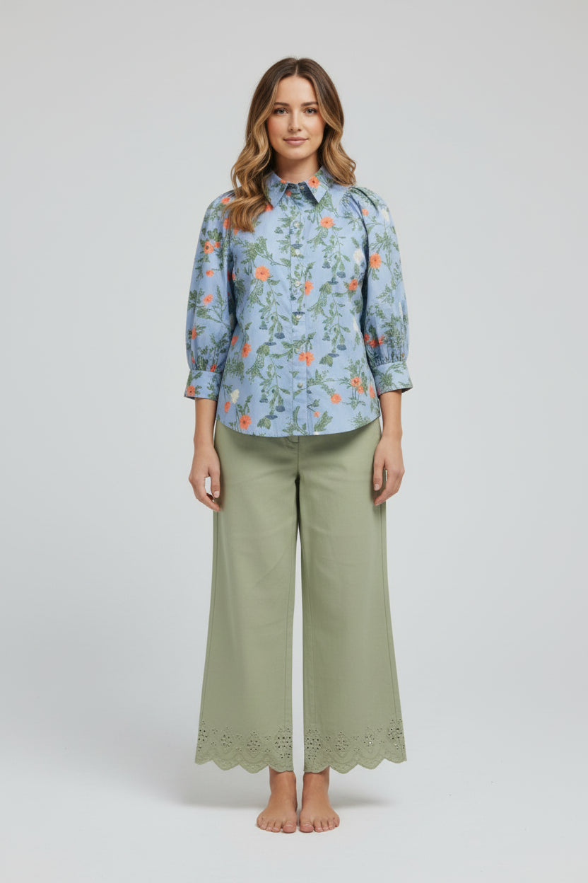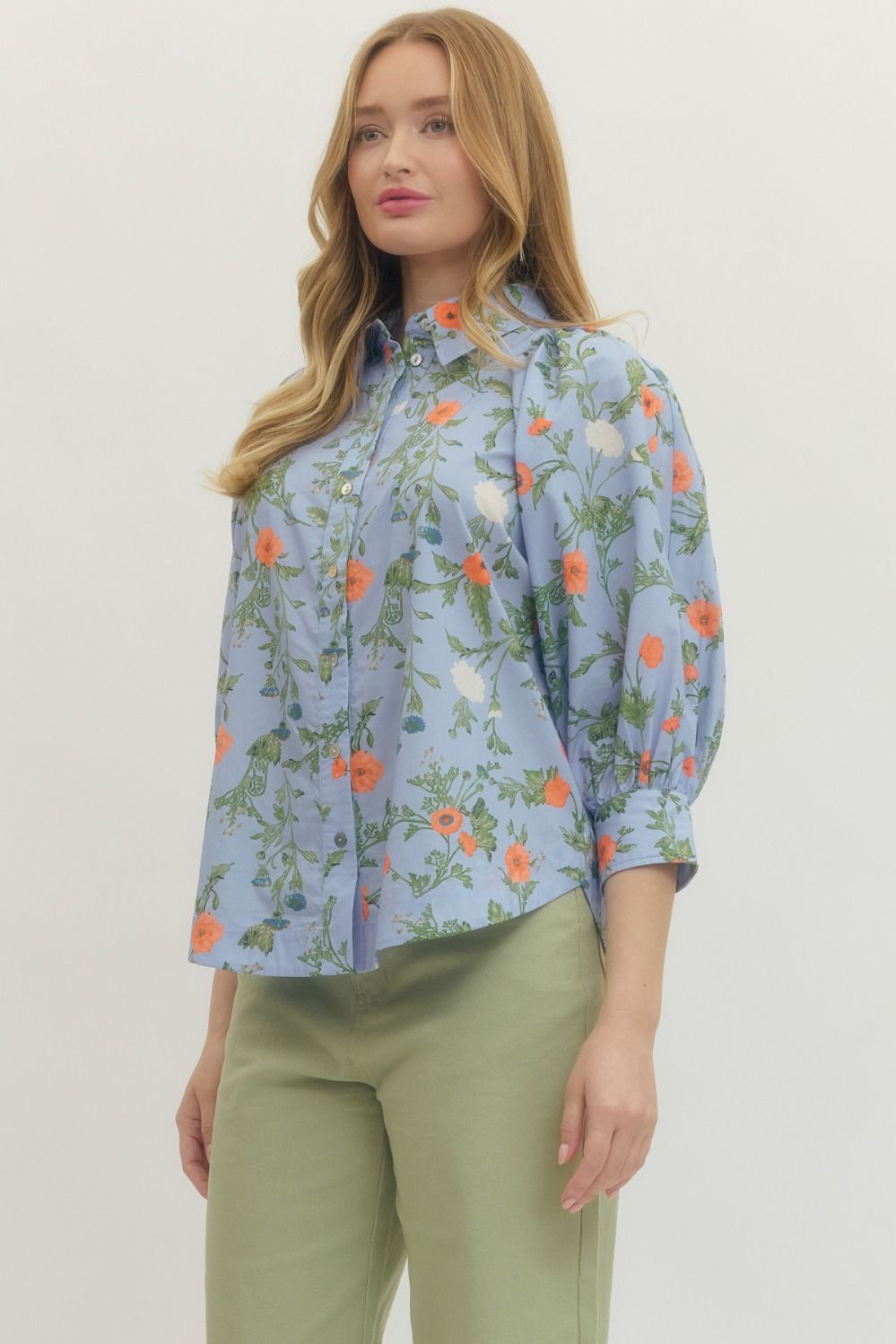 This floral shirt offers a fresh, vibrant touch to your wardrobe with its colorful print and relaxed fit. The button-down style and classic collar keep it structured, while the puffed sleeves add a playful, feminine twist. Ideal for casual outings or springtime events, it pairs beautifully with both skirts and trousers for an effortless, chic look.