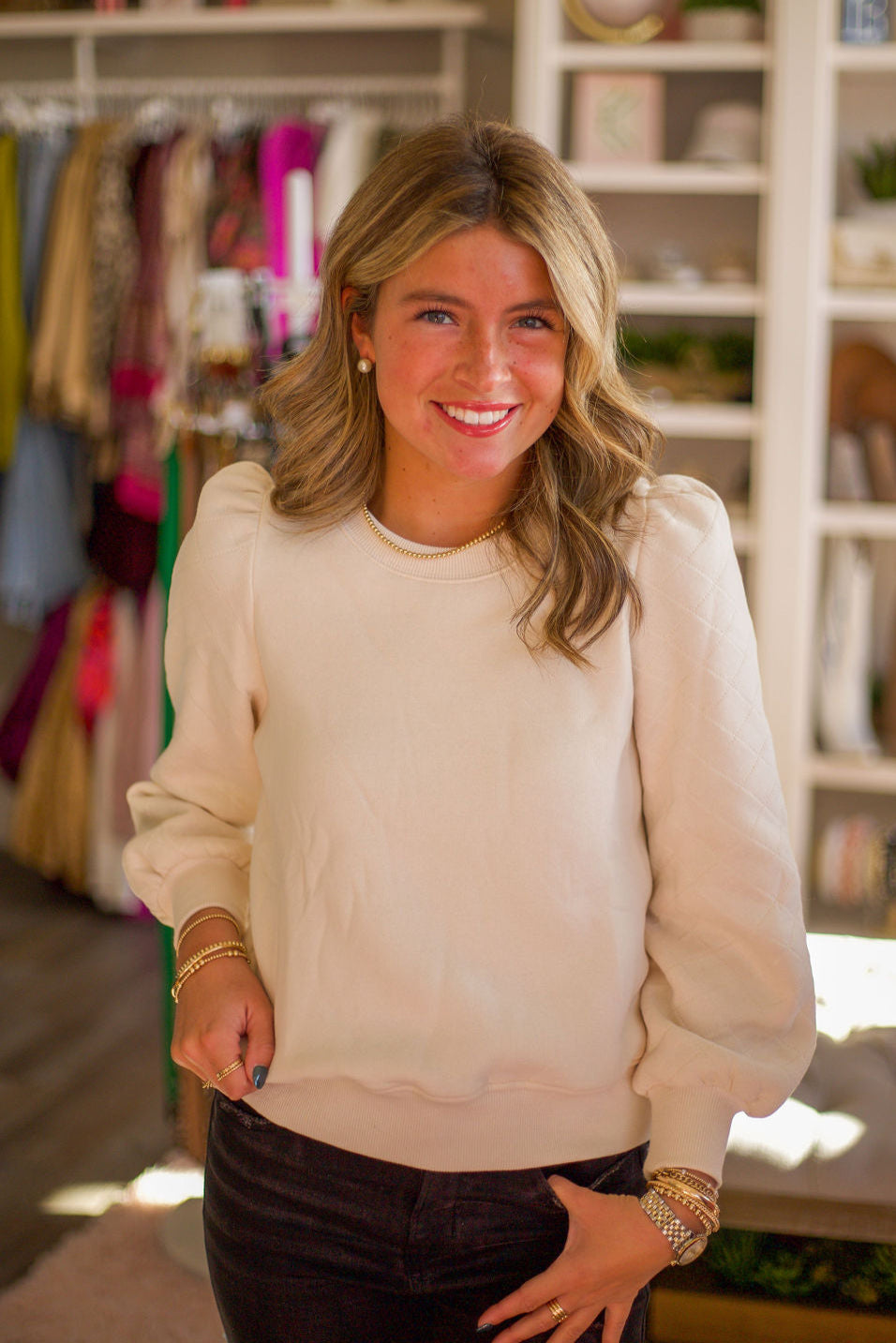 Add some pop to your wardrobe! Our Textured Puff Sleeve Pullover is a fun twist on a classic top. With pinched puff shoulders and ribbed details, it's perfect for any casual occasion. Made with a relaxed fit - it's a versatile and unique addition to your closet!